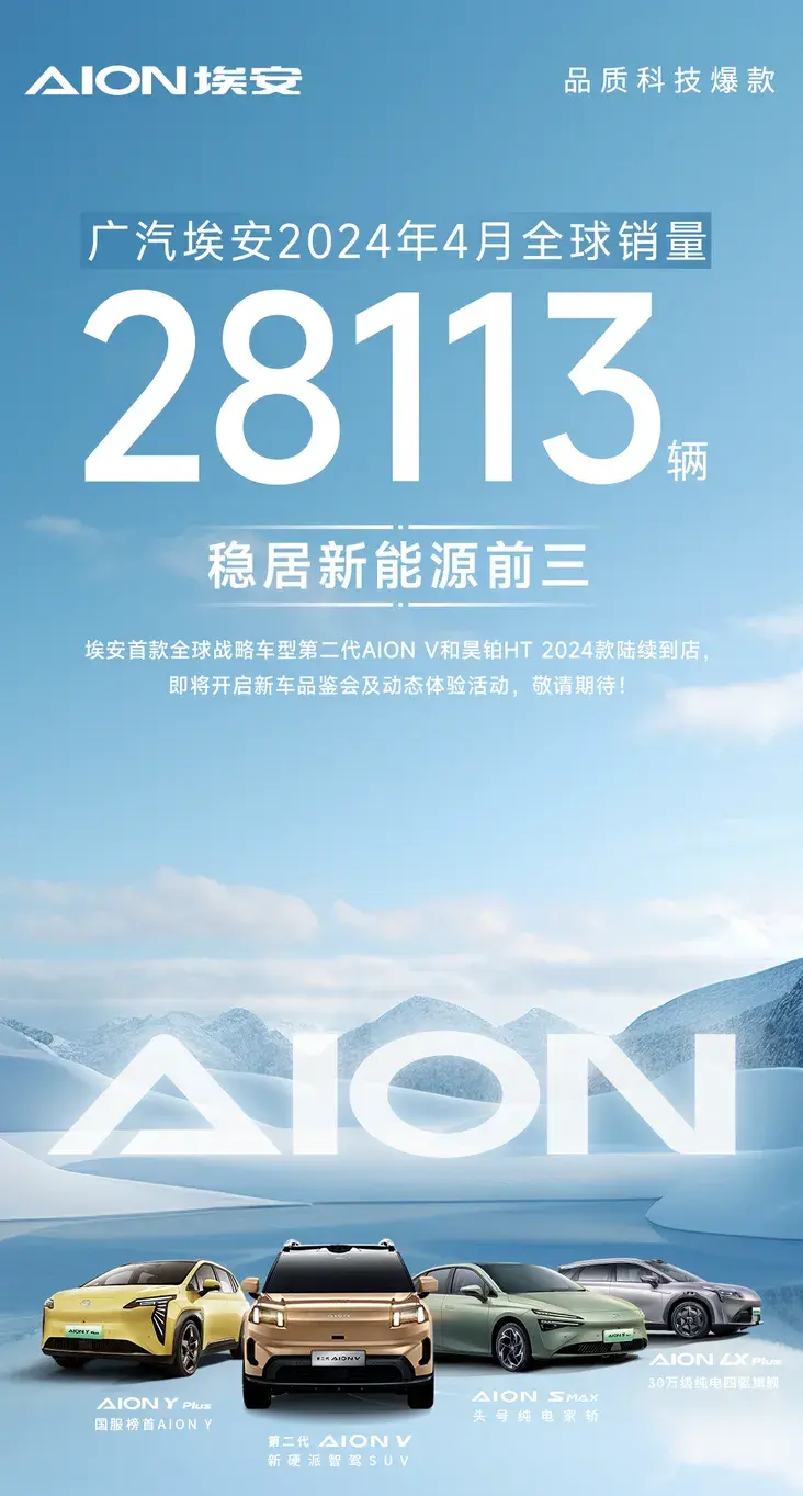 近日,我們從官方獲悉,廣汽埃安4月全球銷量28113輛。