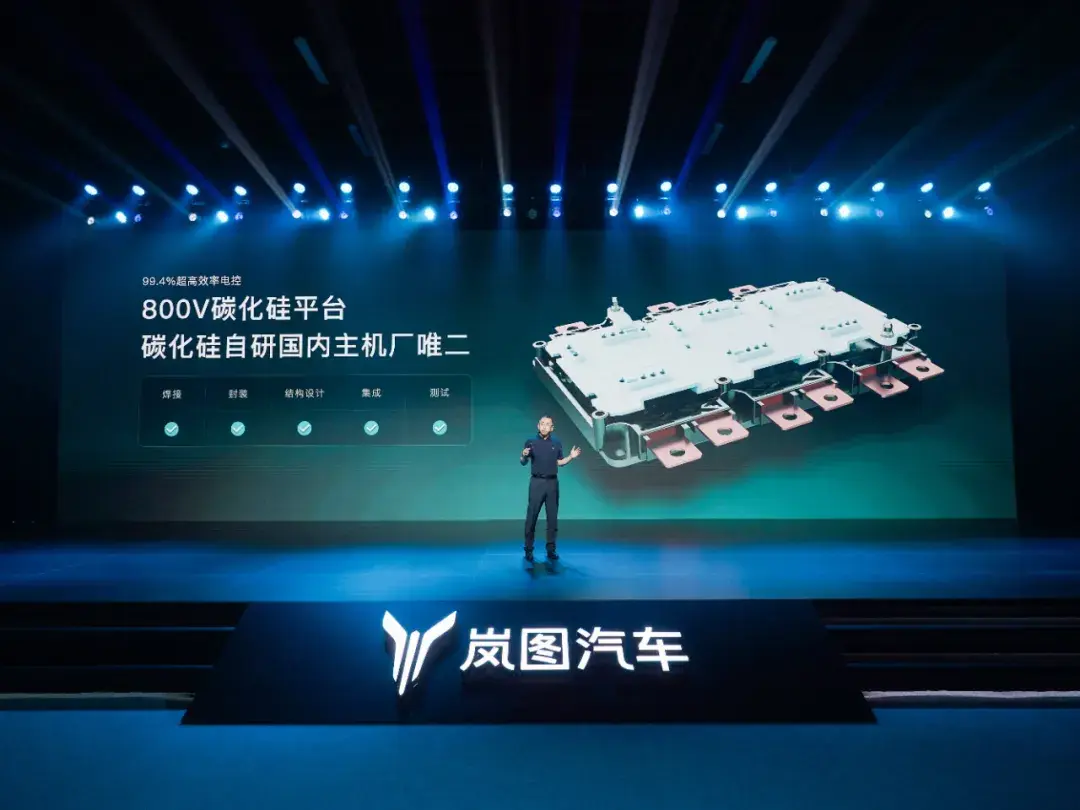 據悉,這一提升主要得益于800V碳化硅平臺的應用,作為國內唯二可以全棧自研碳化硅平臺的車企,嵐圖的電控最高效率可達99.4%,基于全球首次應用的最新一代TMOS 160納米級“精細溝槽柵”芯片,可降低能量傳遞損失20%;還有首創流體力學橢圓針翅”,可將熱阻降低10%。