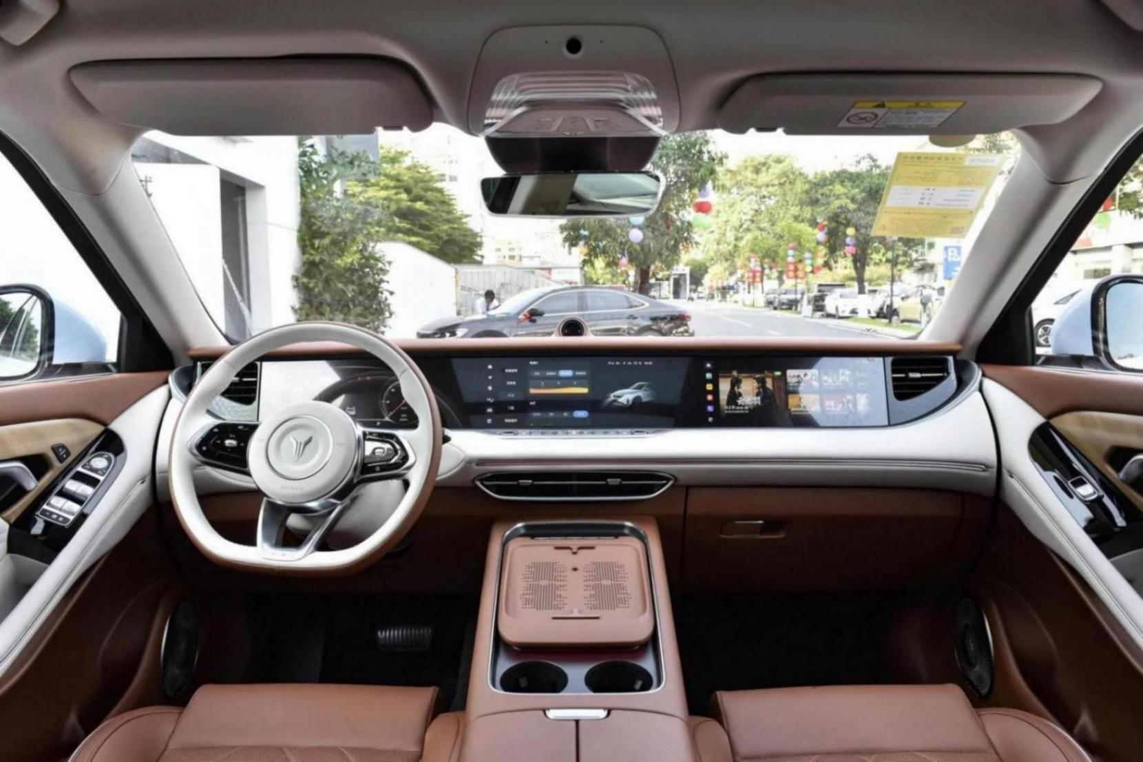 內飾部分,新嵐圖FREE采用的是升降式三聯屏設計,三塊屏的尺寸都達到了12.3英寸,科技感氛圍營造的很到位。同時車內也使用了大量的軟性材質包覆,并做了拼色的處理,進一步彰顯精致感和豪華感。