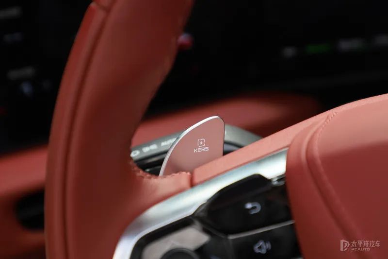 另外,動能回收力度也可以通過方向盤左側的撥片來進行調節,盡管動能回收無法完全關閉,但在調到最低的情況下,松開油門后沒有明顯的拖拽感,這一點能夠給駕乘人員帶來不錯的體驗。