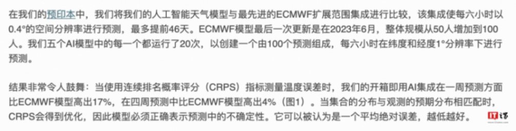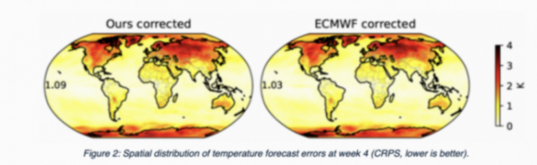 由于相關 AI 模型能夠以更粗糙的空間分辨率運行,并且相對于等效的熱力學模型計算負債耕地,因此在 GPU 只需幾分鐘就可以模擬。因此這些模型“可以更頻繁地運行,以產生更多的模擬,從而獲得更好的天氣預測”。