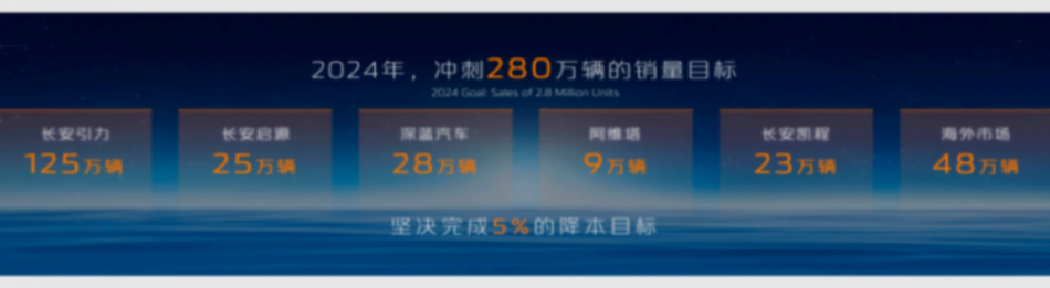 而這一說法,其實也已經在今年1月份的長安汽車全球伙伴大會上,得到了官方證實。在2024年制定的年度目標計劃中,長安引力、長安啟源、深藍汽車、阿維塔、長安凱程的品牌名稱都被清晰顯示出來,唯獨沒有長安歐尚。其中的含義不言自明,即便官方沒有給出明確的告別,長安歐尚的番號,應該是即將作古了。
