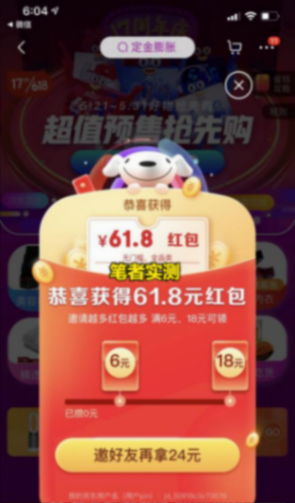 參與今年618京東的20億補貼方式也很簡單,現在打開京東APP,搜索“領福袋288”領取紅包,每個人最高是24618元,筆者自己測試了下,領到了61.8元,可以直接兌換一項特侖蘇牛奶了,每天都可以參加連續一個月領個一二百塊錢應該沒有問題!
