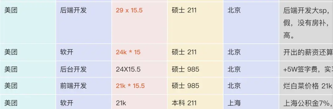 而美團(tuán)秋招的薪水同樣非常美好,后端開發(fā)SP的話,能夠有29*15.5。可以算是一個(gè)非常好的選擇了。當(dāng)然,這個(gè)薪酬對(duì)于北京上海來說的話,只是一般,但要知道這只是起步的收入。