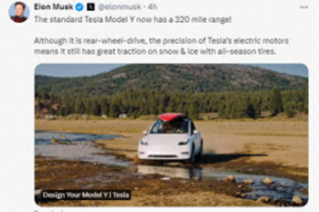 5月5日消息,特斯拉公司首席執行官埃隆·馬斯克近日在社交媒體平臺上宣布,標準的特斯拉Model Y現在擁有320英里(約合515公里)的續航里程。