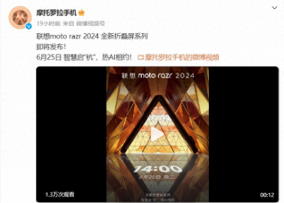 不久前,moto X50 Ultra AI手機正式發布,售價3999元起。日前,摩托羅拉手機官方又宣布了,聯想moto razr 2024全新折疊屏系列定檔6月25日14:00發布,預計是此前入網的moto razr 50/Ultra系列折疊屏手機。