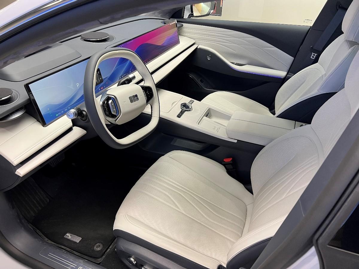 內飾第一眼看還是比較炫酷的,大長屏幕還是比較有特點的,但中控其他地方就沒太強的設計感了,做工用料倒是挑不出什么毛病。車機系統表現好評,無論是響應還是菜單邏輯都挑不出什么問題,整個大屏里的信息一起轉還是挺炫酷的,另外如果能給副駕駛前面的部分加個防窺就更好了。不過中間的旋鈕按壓操作居然是更改主題這種不常用的功能,有點無語。