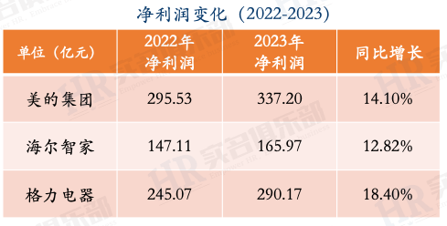 2023年,三家公司凈利潤均保持兩位數的增長。