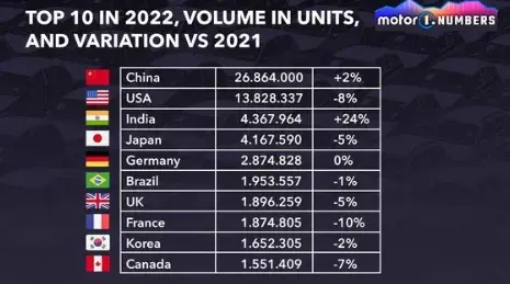 但世界汽車(chē)市場(chǎng)總體還是分三級(jí),千萬(wàn)級(jí)、百萬(wàn)級(jí)、十萬(wàn)級(jí),中、歐、美都是千萬(wàn)級(jí)市場(chǎng),單純一家中國(guó)2340萬(wàn)輛就占到了全球銷(xiāo)量的三分之一,中歐美三家占全球汽車(chē)市場(chǎng)的65%。