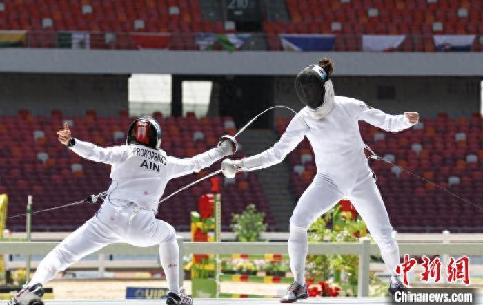 6月15日,河南鄭州,2024年現代五項世界錦標賽女子個人賽決賽上的擊劍比賽項目。 中新社記者 闞力 攝