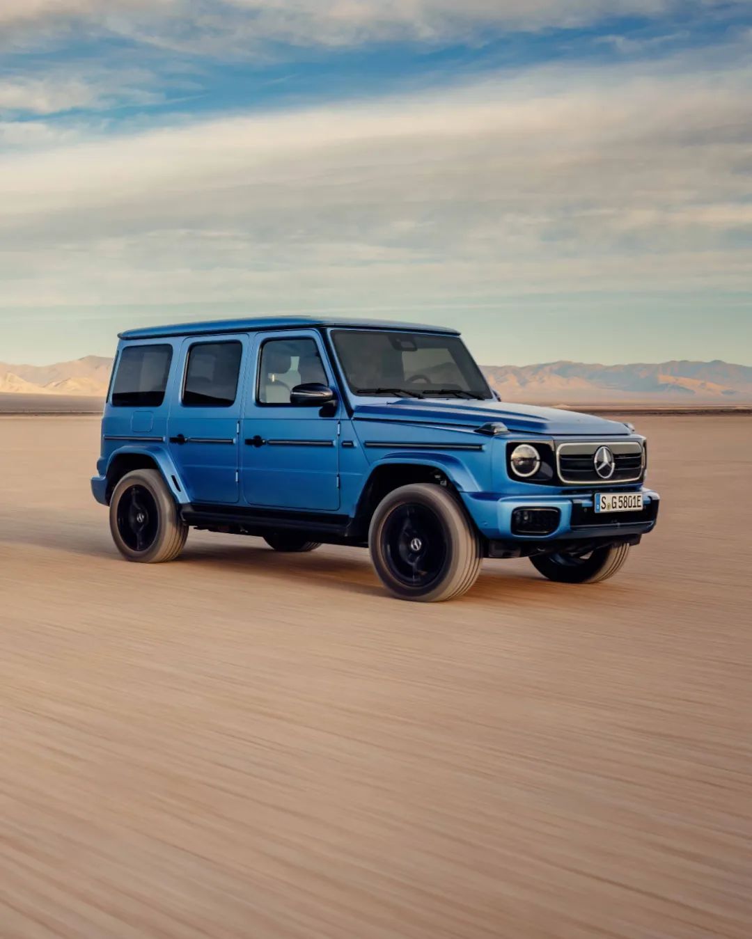 全新梅賽德斯-奔馳純電G級越野車傳承了“大G家族”標志性的方盒子造型、圓形頭燈及機械式車門把手,全新封閉式格柵以LED燈帶環繞,經典備胎罩被可放置工具的車尾裝飾盒取代。