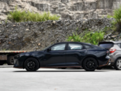 來到側面,側面是整車的一大亮點,車身整體呈俯沖的車身姿態,并搭配了運動車型的溜背造型,并且搭配上了隱藏式門把手,符合了當下的設計主流,同時也增添了科技感。下方則搭配了18英寸多幅式鋁合金輪轂,熏黑的輪圈設計強調了運動屬性。