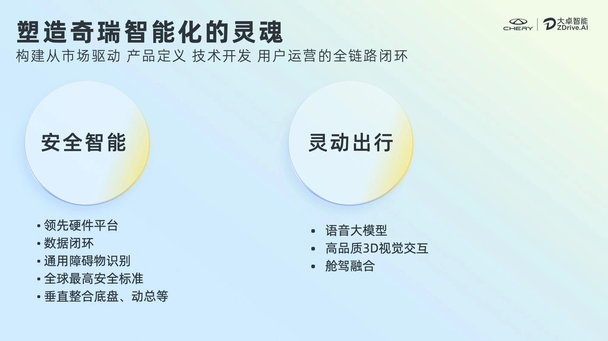 谷俊麗表示:“大卓將圍繞全球1300萬奇瑞用戶,打造市場、用戶、產品、運營的商業閉環,全速推進未來三年奇瑞的智能化轉型,用五年時間走完十年智駕路。”