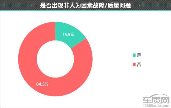 根據調查結果顯示,在接收到的103份有效問卷中,有16份問卷顯示車輛已經出現過非人為故障或質量問題。