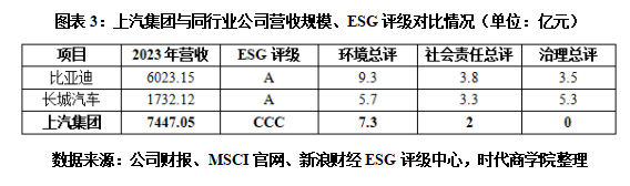 時代商學(xué)院研究發(fā)現(xiàn),在MSCIESG評級中,上汽集團(tuán)在“G”(治理)、“S”(社會)兩個維度的表現(xiàn)遠(yuǎn)遜于“E”(環(huán)境)維度;從關(guān)鍵指標(biāo)來看,上汽集團(tuán)在“產(chǎn)品安全與質(zhì)量”、“勞動力管理”及“企業(yè)行為”等關(guān)鍵指標(biāo)方面的表現(xiàn),均存在一定不足。