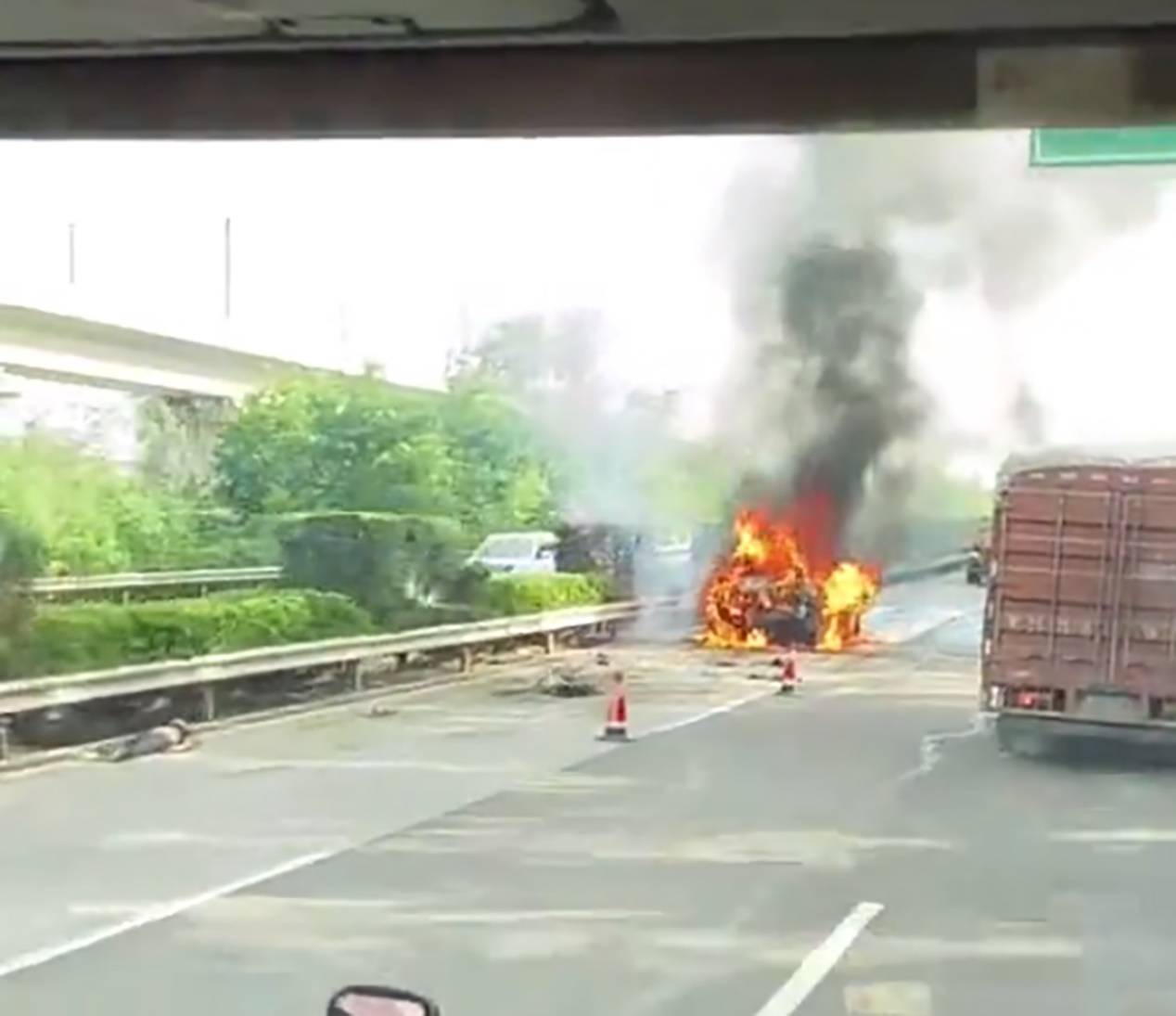 第一點比較復雜,咱們下面單獨聊。先說后面兩點,起火其實在這起事件中最好理解,也最正常?;靹踊蛘呷加蛙嚽安坑邪l(fā)動機,內部有燃油、潤滑油,一旦碰撞破損泄露,很容易起火。而電車的電池起火,大概率是因為電池擠壓變形,產生熱失控。