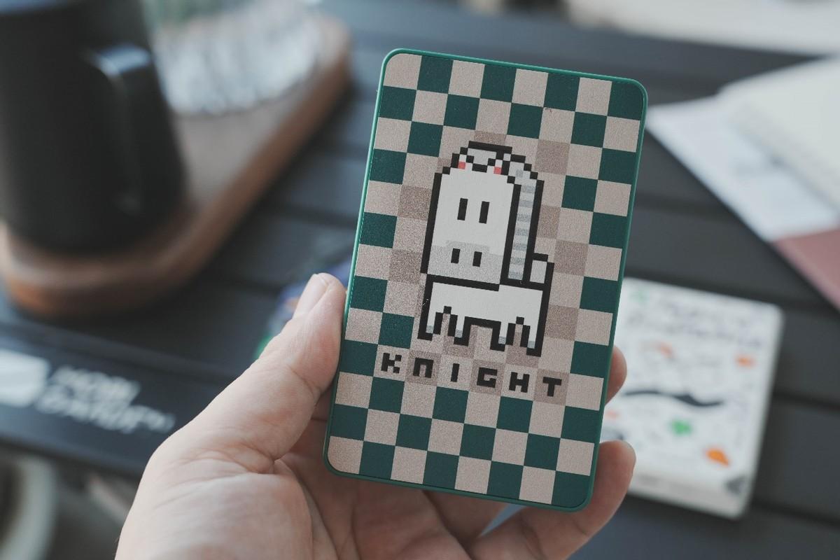 首先來看黑魚旗手,這款充電寶的設計靈感來自于國際象棋的棋盤,方格的元素加上復古綠的配色確實讓人眼前一亮,卡通的元素也讓這款充電寶的外觀設計有了不錯的親和力。
