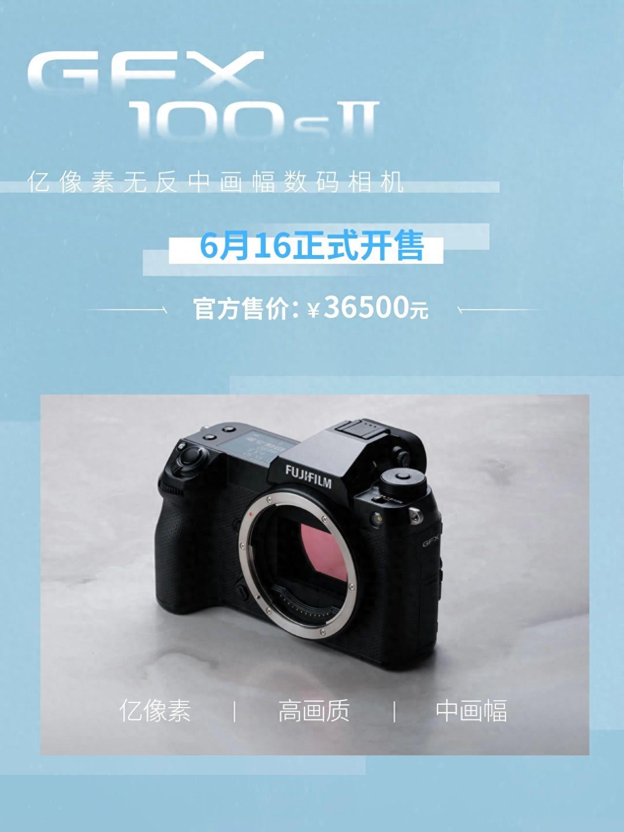 6 月 16 日消息,富士 GFX100S II 相機今日正式開售,搭載 1.02 億像素的中畫幅傳感器“GFX 102MP CMOS II”以及高速圖像處理引擎“X-Processor 5”,定價 36500 元。