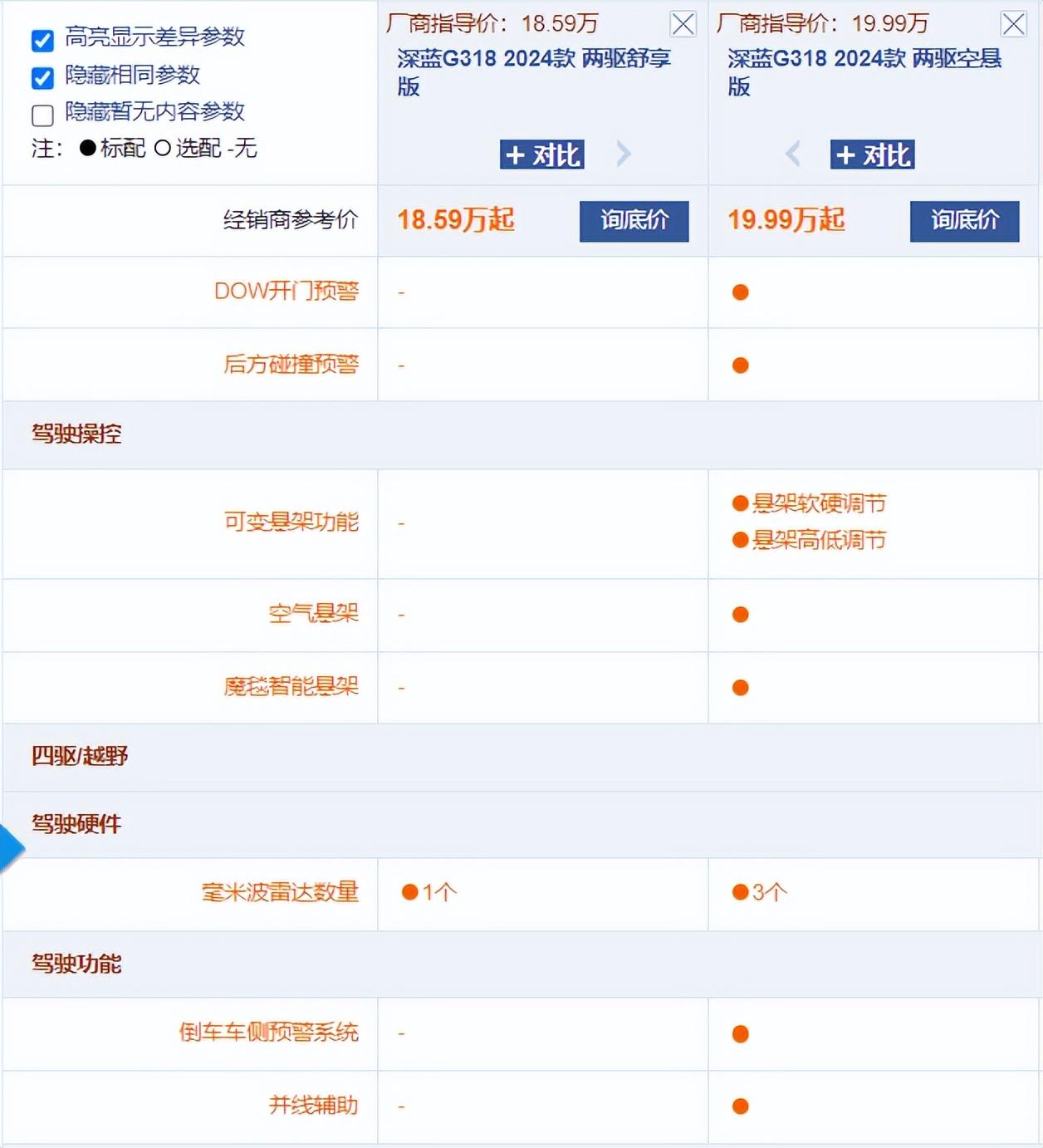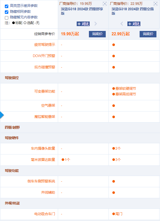 這樣看來,如果只看兩款四驅(qū)版車型,其實(shí)頂配配置更豐富。再結(jié)合上價(jià)格:四驅(qū)舒享版19.99萬與四驅(qū)空懸版22.99萬元來看,相差三萬元,其實(shí)舒享版的配置也不錯(cuò)了。