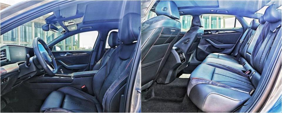 車身尺寸為4990*1854*1487mm,軸距2871mm。車長更長,車寬更寬,坐下來的感覺更加寬敞,體驗也更加高級。尤其是后排座椅在豪華舒適性配置上尤為出眾,后排座椅可以實現電動調節,最大支持10°調節。