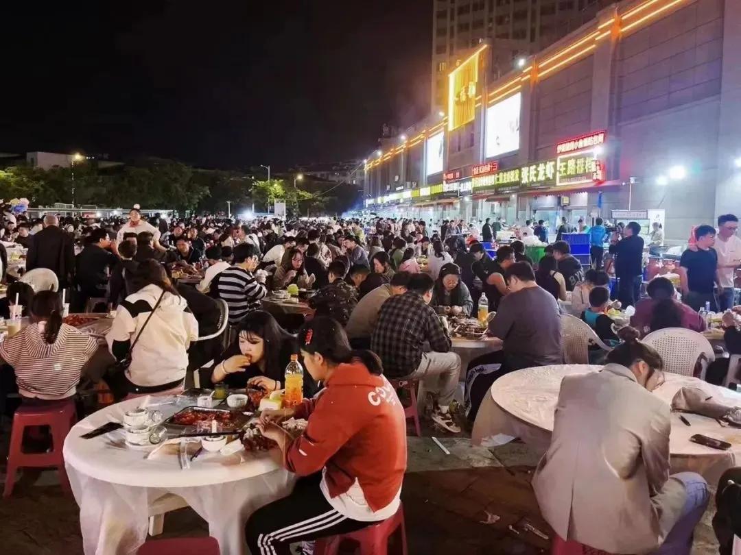 “五一”正值“尅龍蝦、喝啤酒”的時節,盱眙做足“龍蝦”文章,為文旅消費引流。假期前,該縣宣布“五一”至8月開展夜市特色活動,為游客打造夜食、夜購、夜娛、夜游場景。依托商業綜合體自有空間、外圍場地等公共空間進行夜間外擺,開展文藝演出、直播帶貨、美食嘉年華等。依托商貿中心等開放式商業街的公共空間設置小吃夜市疏導點,經營以小龍蝦、麻辣燙、燒烤等為主的特色小吃。開放城區7條主次干道,鼓勵道路兩側餐飲業經營門店利用店鋪前公共空間外擺經營小龍蝦等特色餐飲。