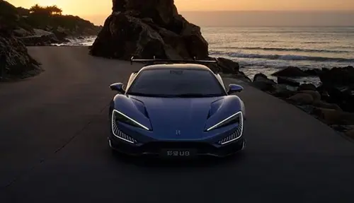 車內方面,仰望U9采用了環抱式設計,使用了大量的碳纖維和麂皮材質包覆。車輛配備了全液晶儀表和豎向放置的中控屏幕,屏幕下方還配備了駕駛模式控制旋鈕和觸控按鍵。此外,該車還搭載了智能駕駛輔助系統,可實現自適應巡航、自動泊車、遙控泊車等功能。內飾方面,仰望U9推出了赤曜紅、日珥橙和星云紫三種配色。