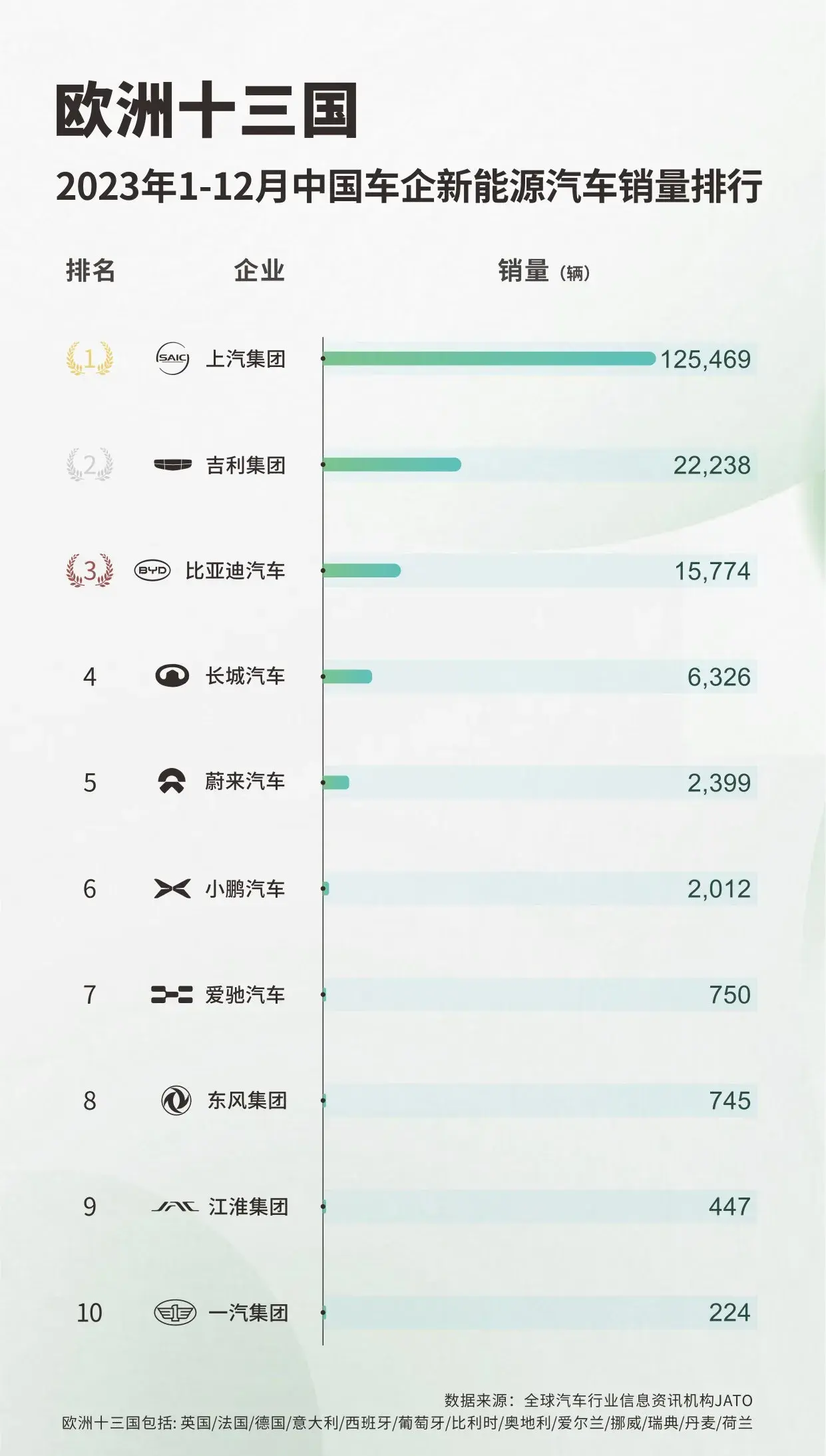 上汽集團在歐洲賣得究竟有多火呢?僅2023年一年,上汽在歐洲十三國的新能源汽車銷量,就已超過了12.5萬輛,比其他國內(nèi)車企出口歐洲的總和還要多。