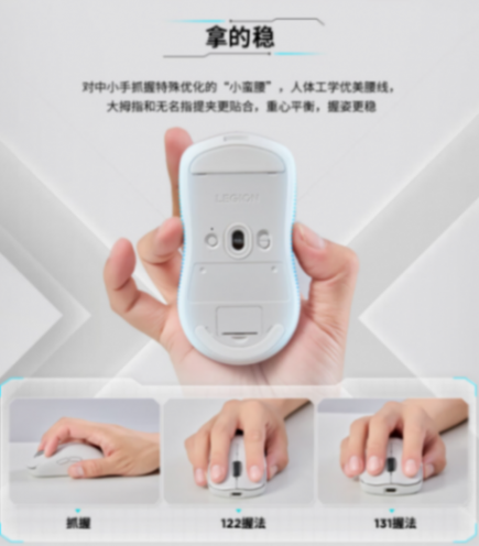 M6X Pro 鼠標(biāo)采用“小蠻腰”設(shè)計(jì),支持“抓握”、“122 握法”和“131 握法”;鼠標(biāo)底部擁有圓角 PTFE 腳墊,加之輕量化設(shè)計(jì),官方表示搭配拯救者 Speed Aim 鍍膜鼠標(biāo)墊可實(shí)現(xiàn)低摩擦力滑動(dòng)。