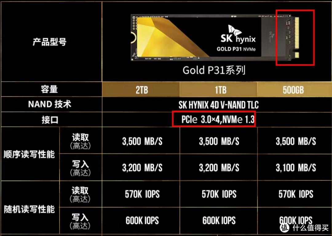 比如海力士P31,它的傳輸總線是PCIe3.0*4,采用NVMe1.3高速協議,物理接口是M.2接口,帶寬(傳輸系統數據的速度)可達3.5GB/s。