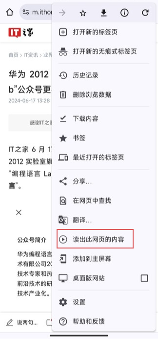 6 月 17 日消息,谷歌正悄悄為安卓版 Chrome 瀏覽器帶來“朗讀此頁”的新功能,可以直接朗讀網(wǎng)頁內(nèi)容。