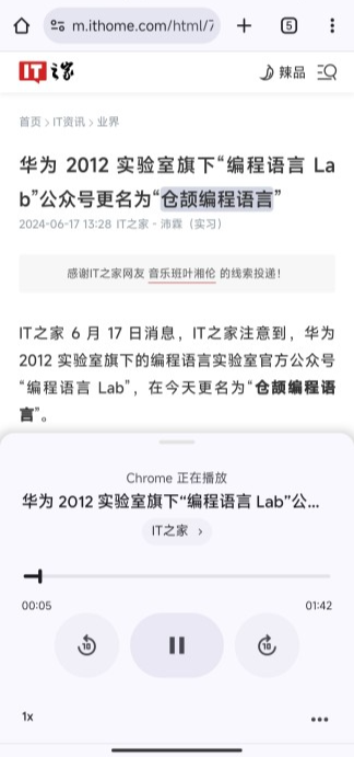 “朗讀此頁”功能擁有類似于音樂或播客播放器的控制選項(xiàng),用戶可以暫停、調(diào)整朗讀速度、快進(jìn)或后退 10 秒。同時(shí),用戶還可以根據(jù)個(gè)人喜好選擇朗讀使用的語言和聲音。根據(jù)谷歌的幫助頁面,該功能目前支持中文、英語、法語、德語、阿拉伯語、印地語和西班牙語等多種語言。