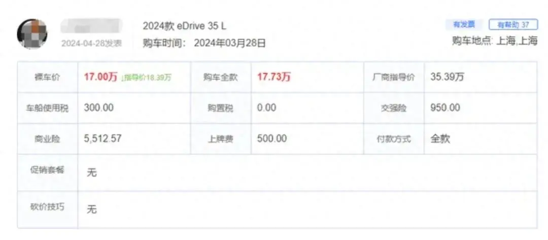 新能源車的“價格戰”打了不是一天兩天了,新車都是幾千幾千的降,老車也不過是幾萬幾萬的降,但像寶馬這樣的狠角色可謂是絕無僅有,一出手就是十幾萬的優惠,部分4S店的裸車價降至17萬多,相當于5折促銷。