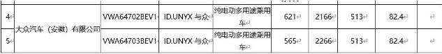 ID.UNYX與眾提供有后驅單電機版本和四驅雙電機版本,前者最大輸出功率為170千瓦,后者匹配最大輸出功率為80千瓦的前電機,以及最大輸出功率為170千瓦的后電機,系統綜合最大輸出功率250千瓦。同時該車搭載容量為82.4千瓦時的電池組,CLTC續航里程分別為621公里和565公里。