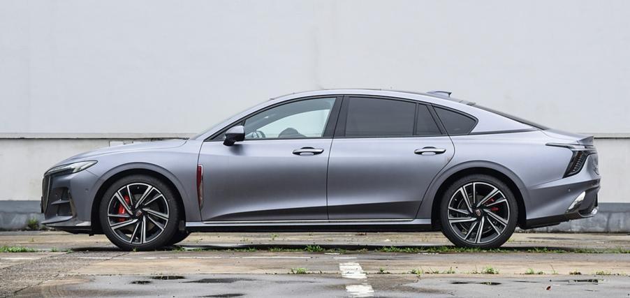 流塑的車身曲面及水滴的線條,讓2024款紅旗H6看起來更為動感。低矮的車頭與過渡流暢的A柱,帶來更低的風(fēng)阻系數(shù);急速下墜的車頂延伸至尾部,也將溜背轎跑車的靈魂演繹的淋漓盡致。車窗外沿采用黑化處理,增加了整體的運動感。車門把手下方此起彼伏的腰線搭配車門下方的筋線,力量感十足。輪胎采用225/50或245/45 R18規(guī)格,雙五輻式的輪轂及前輪內(nèi)置的Brembo對向4活塞剎車卡鉗提供了優(yōu)秀的制動力表現(xiàn)。車身長寬高4990*1880*1455mm,軸距2920mm,定位于中型轎車。
