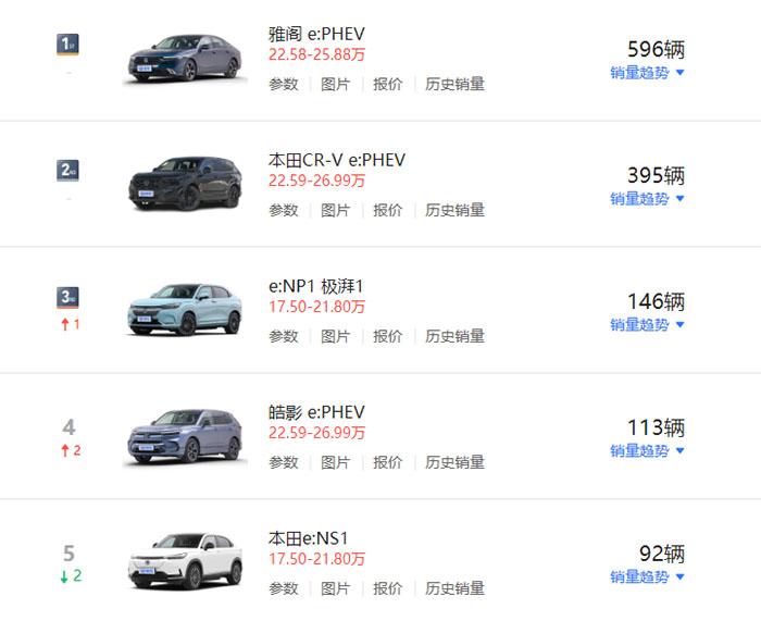 以廣汽本田雅閣e:PHEV車型為例,其在今年前5個月銷量2723輛,月均銷量不過550輛;東風本田CR-V e:PHEV車型,除了今年1月份1202輛的銷量,后續四個月銷量均未超過500輛;而本田e:NS1銷量就相對更慘了,其月均銷量不過200輛。
