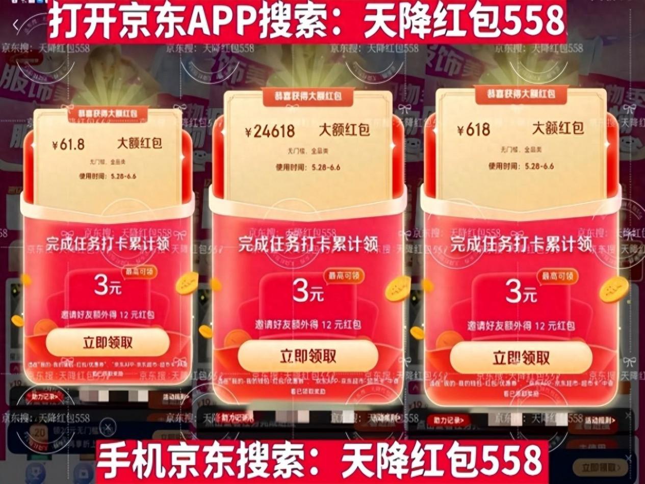 京東APP搜索:天降紅包558(每天三次)