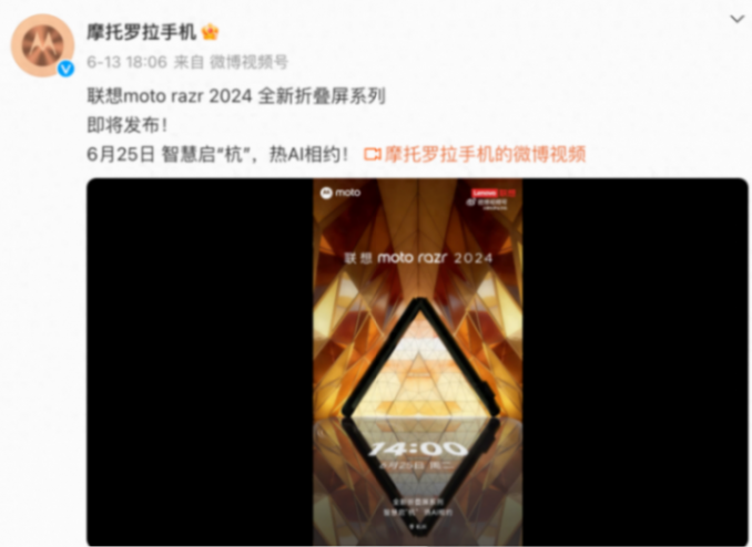 據預熱,聯想moto razr 2024全新折疊屏系列將于6月25日和大家見面,從預熱Slogan來說,猜測AI能力或許是主打賣點之一。