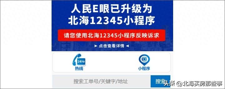 微信里面打開小程序,然后搜索“北海12345”。它以前叫“人民E眼”,現在升級為“北海12345”,它是北海市的咨詢平臺和投訴平臺。