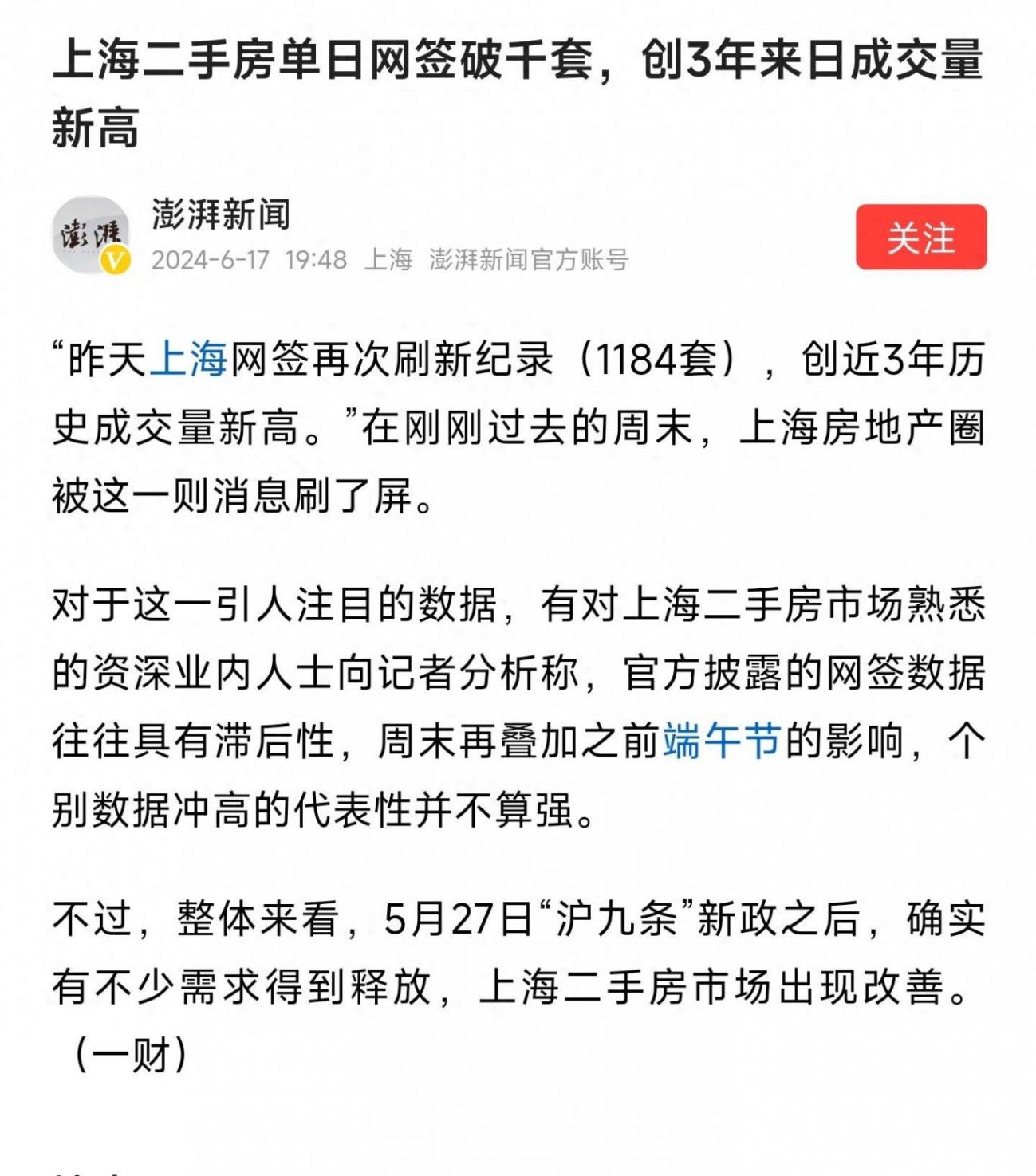 如上圖所示,我們可以清楚地看到上海的二手房單日網簽突破了1184套。雖然也不算太多,但是創下了三年以來單日成交量的新高。