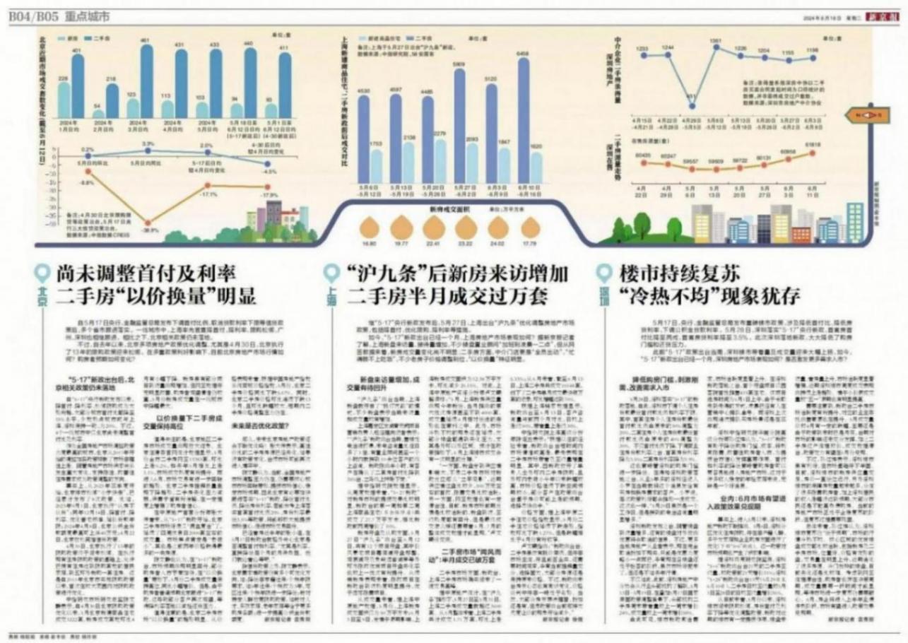 2024年6月18日新京報(bào)貝殼財(cái)經(jīng)周刊《5·17新政滿月 九城樓市觀察》。