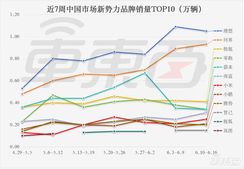 2024年第24周(6.10-6.16)中國市場新勢力品牌銷量