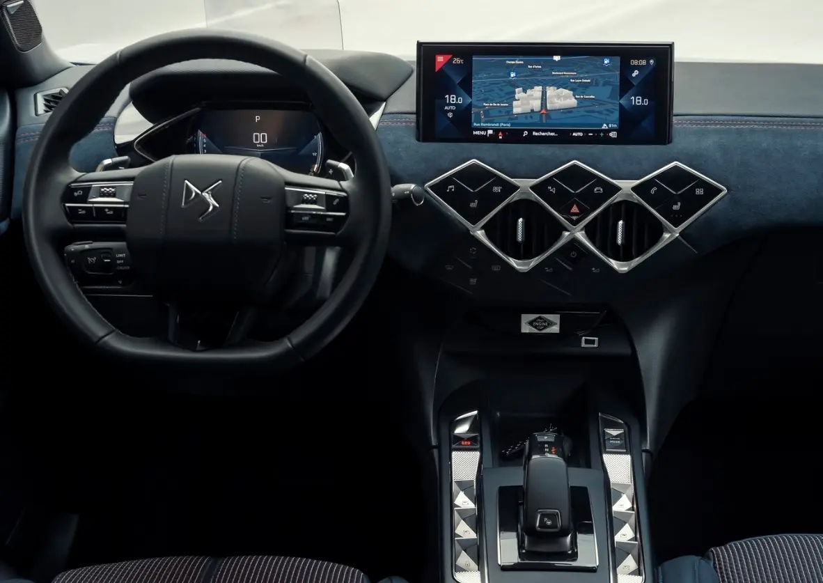 進入車內,DS 3 Esprit de Voyage的內飾設計同樣令人驚艷。專屬Logo點綴的座椅、儀表板、車門位置和迎賓踏板,搭配真皮打孔方向盤,
