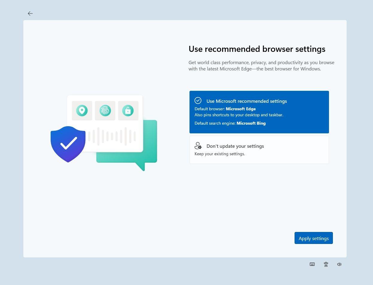 該橫幅頁面會(huì)有“確認(rèn)”(Confirm)和“稍后設(shè)置”兩個(gè)按鈕選項(xiàng),用戶點(diǎn)擊前者之后會(huì)跳轉(zhuǎn)到設(shè)置頁面,在默認(rèn)應(yīng)用中會(huì)出現(xiàn)“將 Microsoft Edge 設(shè)為默認(rèn)瀏覽器”提示。