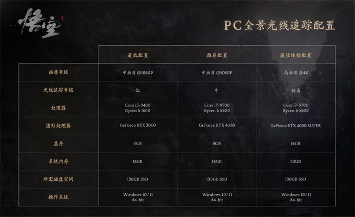 使用GeForce RTX 4060或以上GPU,即可達到游戲的推薦配置(中畫質@1080P),在1080P分辨率下使用游戲精心調校的全景光線追蹤畫面,體驗西游之路的風景見聞、領略短兵相接的戰斗和出奇制勝的法術。