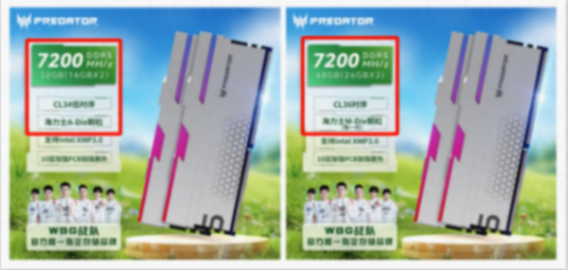 ▲比如宏碁掠奪者的Hermes冰刃系列,采用海力士A-Die顆粒的7200MHz內存,其XMP時序為CL34,而XMP頻率為7200MHz的海力士新一代M-Die顆粒內存時序則為CL36,因此,如果想要極限超頻或者極限壓低內存時序的朋友,請選擇特挑海力士A-Die顆粒內存。