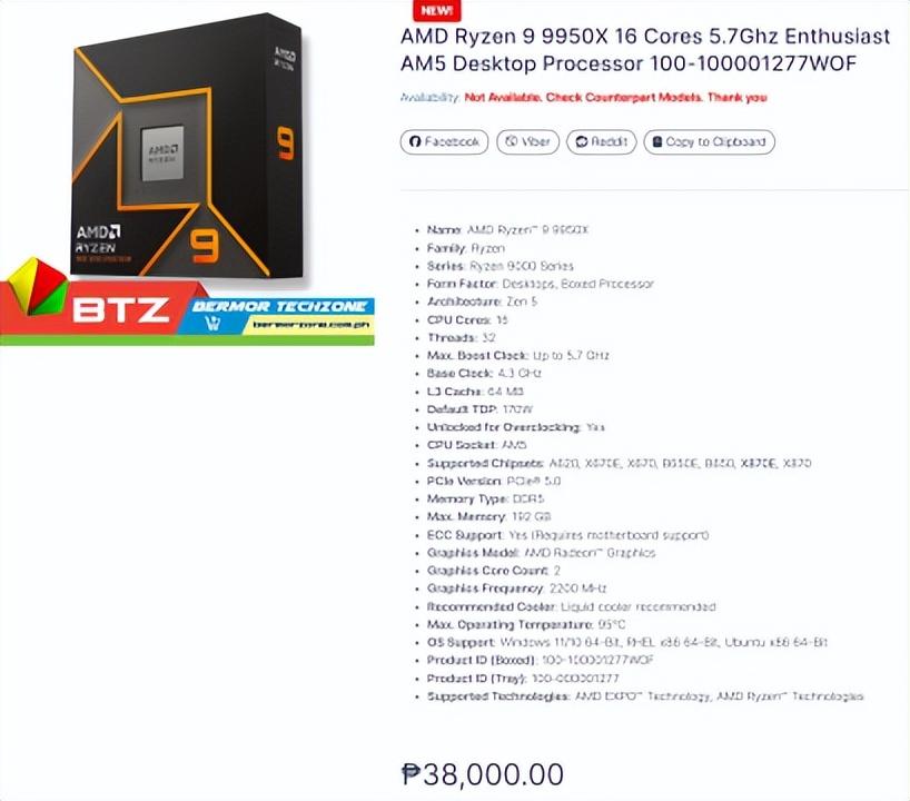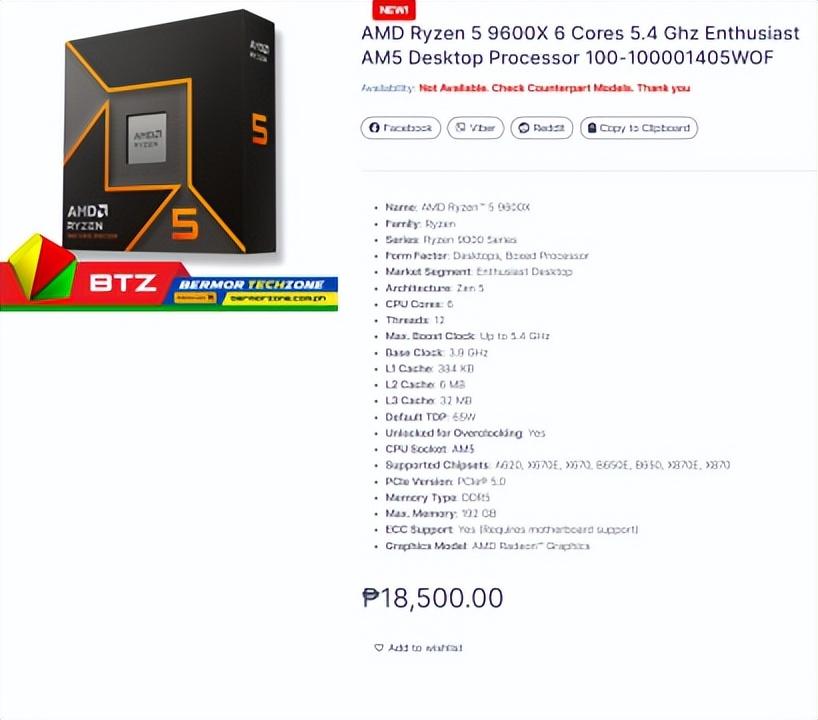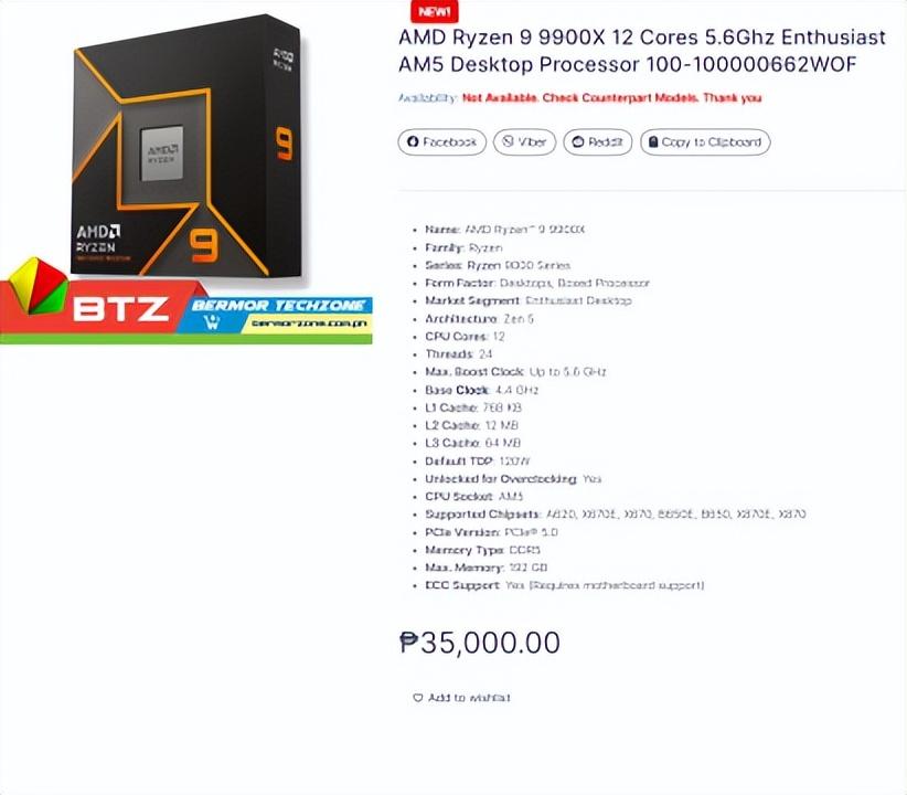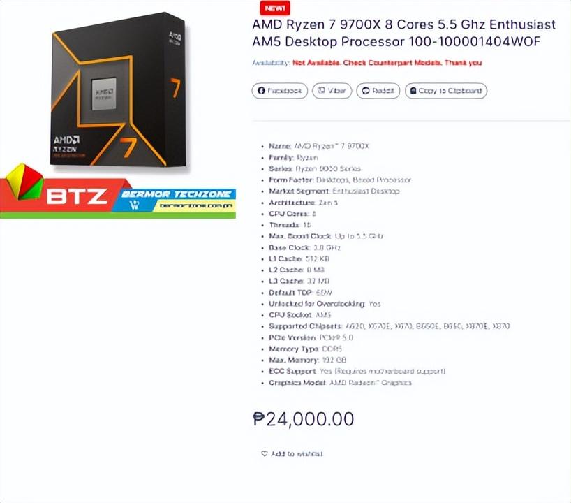 除此之外,近日菲律賓零售商Bermorzone也公布了四款Ryzen 9000系列處理器的價格,詳情如下: