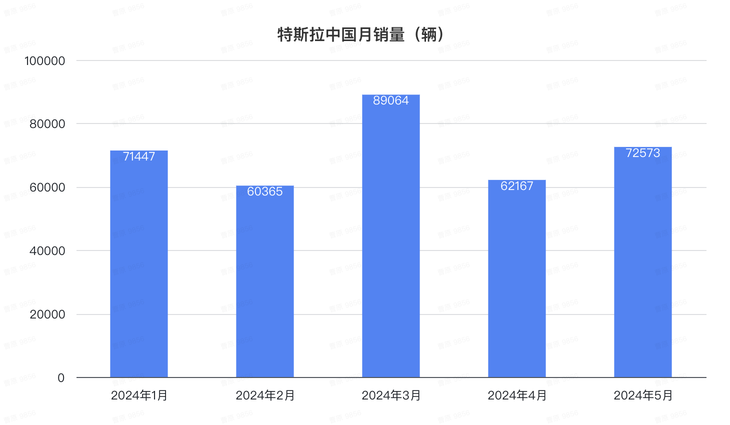 特斯拉略有增長,5月銷量為72573輛,雖然環比增加16.7%,但同比減少6.6%。