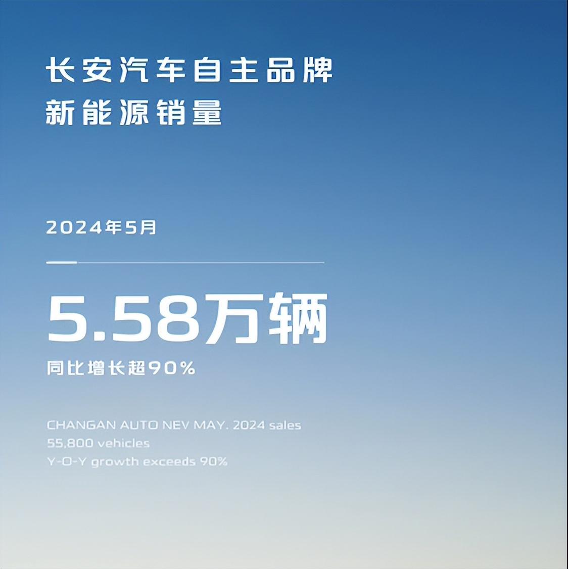 長安汽車5月新能源汽車交付同樣超過5萬輛,達55800輛,同比增加107.3%,環比增加17.4%。
