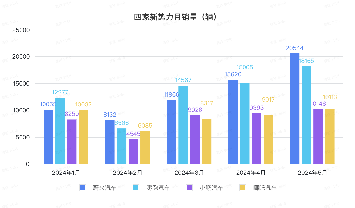 以及重新回到原有水平的蔚來汽車、零跑汽車、小鵬汽車和哪吒汽車,交付量分別為20544輛、18165輛、10146輛和10113輛,同比漲幅分別為233.8%、50.6%、35.2%和-28.8%。