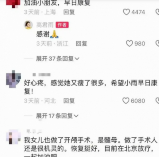 很多網(wǎng)友非常擔(dān)心她的身體情況惡化,所以對(duì)于高君雨媽媽在評(píng)論區(qū)的回復(fù),大家都非常重視。